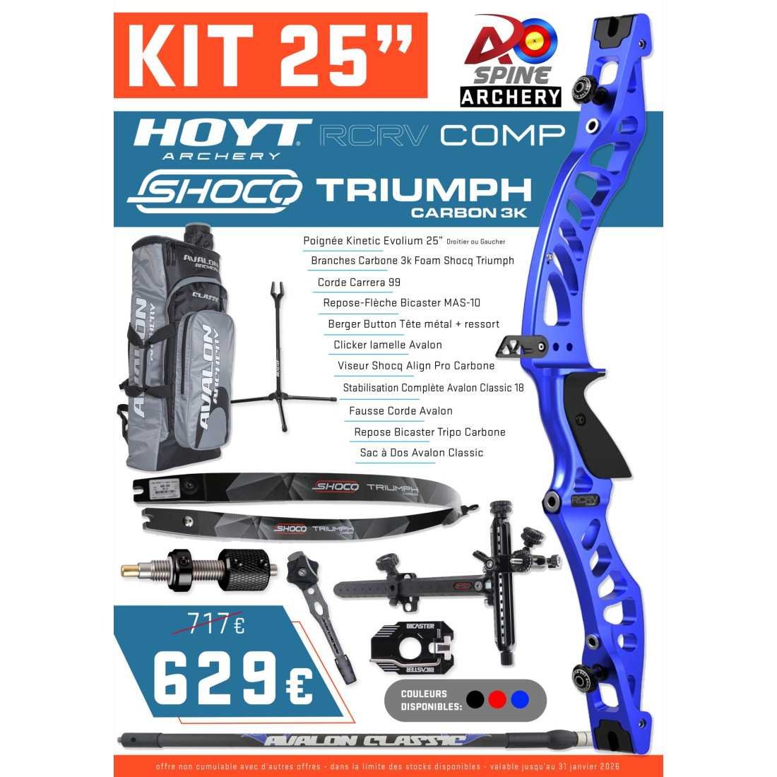 Le kit arc classique Hoyt RCRV Comp 25" est idéal pour les archers désirant faire de la compétition sur les bonnes bases avec un arc équipé de branches carbone foam 3k.