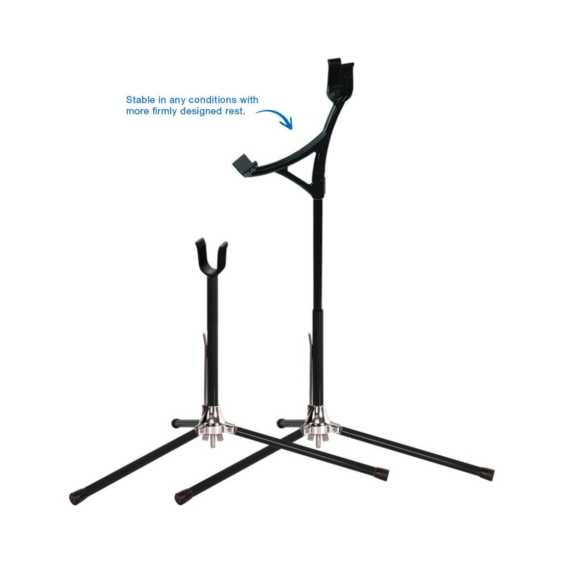 Modèle très solide et facile à monter à l'aide de l'écrou papillon sur la base du repose arc qui maintient les pieds.